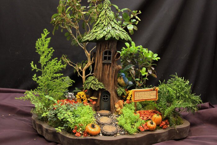 We have fairies, gnomes, animals, benches, chairs, bridges, houses, mushrooms, unicorns, wagons, wheel barrows etc. Tons of accessories for indoor and outdoor gardens. We also have containers to plant them in and the plants to use, tropical plants and succulents for indoors, ground covers, evergreens, and miniature plants for outdoors.